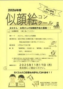 毎年多くの皆さんにご応募をいただいている似顔絵コンクールを、今年も実施いたします。 パパ・ママいずれかの似顔絵を描いて、11月17日までにご応募ください!最優秀賞・優秀賞の作品については、来年2月発行予定の「輪風96