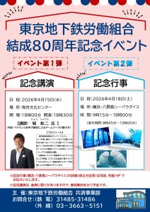2月10日(月)13時00分から曳舟文化センターにおいて「2025地下鉄祭典」を開催いたします。 地下鉄祭典は、来るべき春闘に向けて組合員の意思結集を目的に開催しております。今年は7団体が出演し、地下鉄祭典を盛り上げます